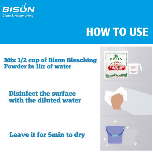 - Mix ½ cup of Bison bleaching powder in 1 ltr of water.