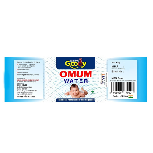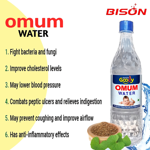 - For consumption: Mix 1–2 tablespoons of Omum Water in a glass of lukewarm water and consume after meals.